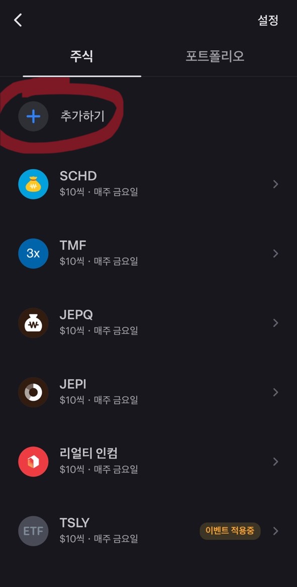 위 슬라이드대로 추가하기 하고 모으기를 하실 주식을 골라주세요!